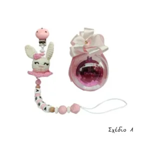 Χριστουγεννιάτικο σετ δώρου “Τα Πρώτα μου Χριστούγεννα” ροζ, Λαγουδάκι (κλιπ πιπίλας & μπαλίτσα)