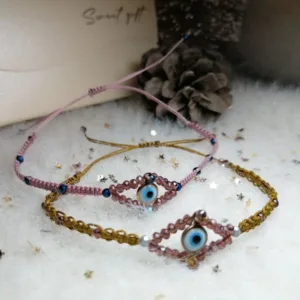 Βραχιόλι Μακραμέ Φυλαχτό Μάτι με Κρύσταλλα