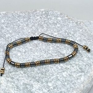 Κολιέ με μαύρη πέτρα και αιματίτη, με ατσάλινο χρυσό – μαύρο μάτι με σμάλτο