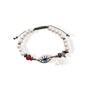 Βραχιόλι με πλέξιγκλας μάτι και πέρλα