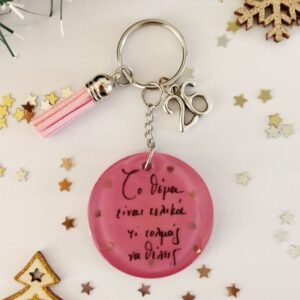 Μπρελόκ γούρι με μήνυμα, από υγρό γυαλί