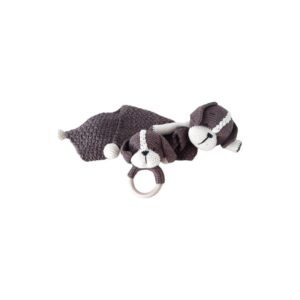 Πλεκτό Σετ Δώρου – Amigurumi, Πανάκι παρηγοριάς & Κουδουνίστρα, Σκυλάκι