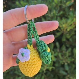 Μπρελόκ φραουλίτσα πλεκτή με λουλούδι