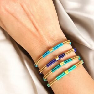 Βραχιόλι με ημιπολύτιμους λίθους ακατέργαστης Τουρμαλίνης και Φεγγαρόπετρας
