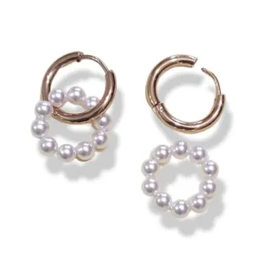 Σκουλαρίκια Ατσάλινοι κρίκοι με πέρλες