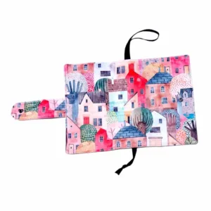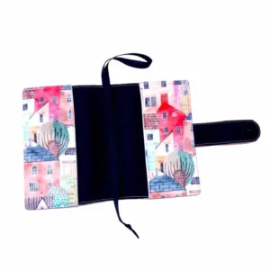 Η θήκη είναι κατασκευασμένη από βαμβακοσατέν ύφασμα εξωτερικά, απαλό σαν βελούδο, και βαμβακερό εσωτερικά. Διαθέτει εσωτερική ενίσχυση για μεγαλύτερη σταθερότητα και κορδέλα/ σελιδοδείκτη για να μη χάνετε ποτέ τη σελίδα που διαβάζετε.