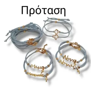 Μαρτυρικά βραχιόλια με γαλάζιο σουέντ κορδόνι και επιχρυσωμένο σταυρό με ματάκι. Κλείνει με επιχρυσωμένη χάντρα. Θα τα παραλάβετε συσκευασμένα σε κουτί αποστολών.***Στο κατάστημά μας θα βρείτε τα αντίστοιχα μαρτυρικά για την οικογένεια.