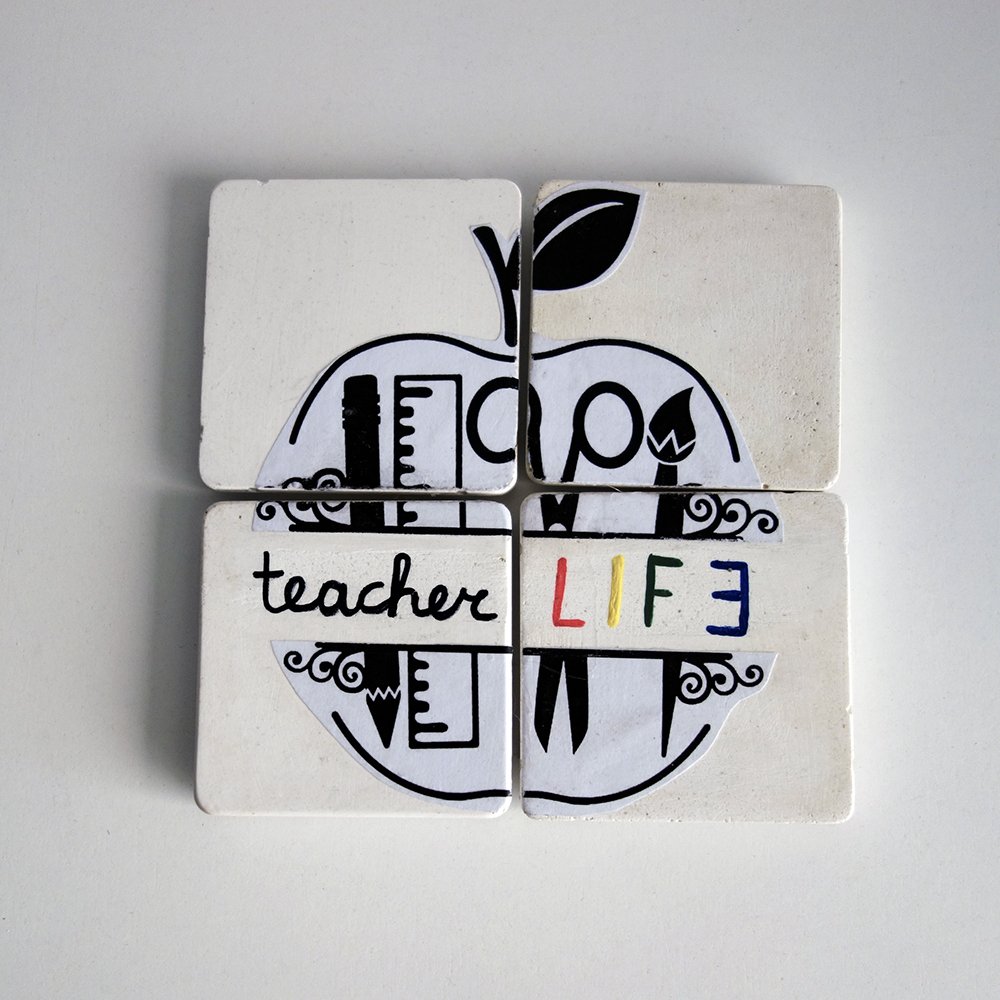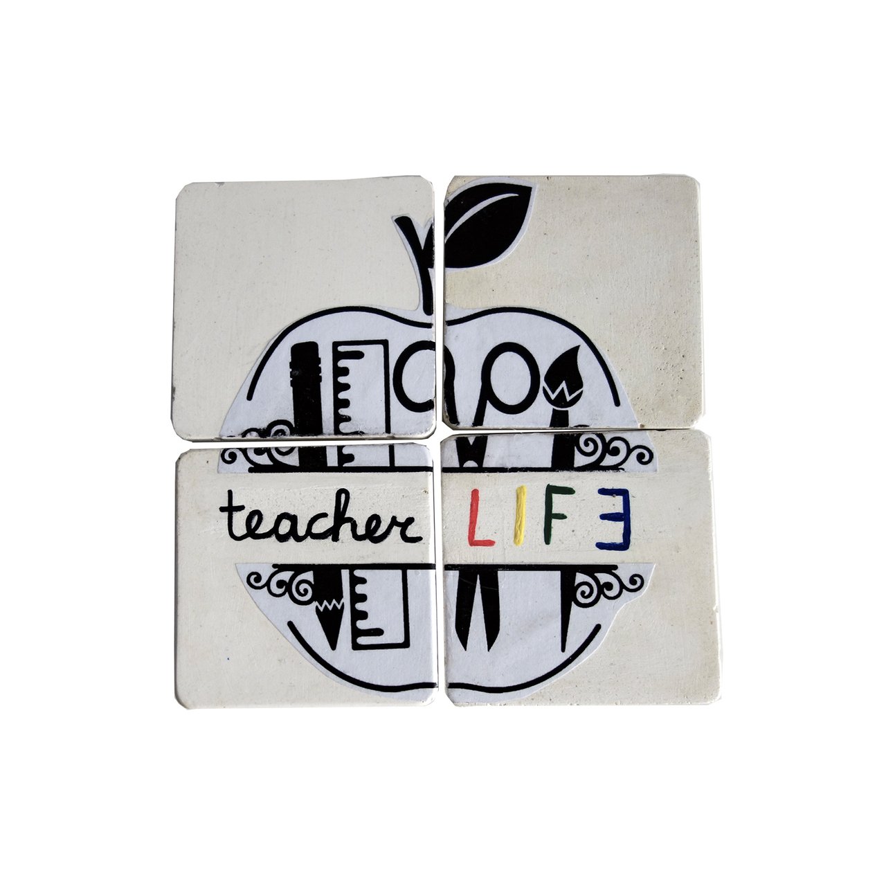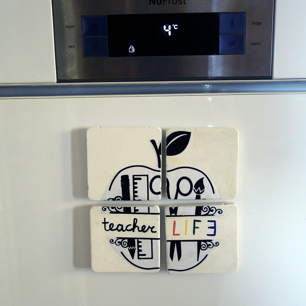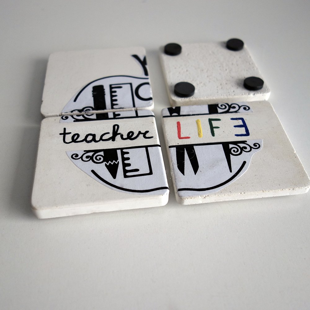 4 Μαγνητάκια Τετράγωνα Από Τσιμέντο “Teacher LIFE”