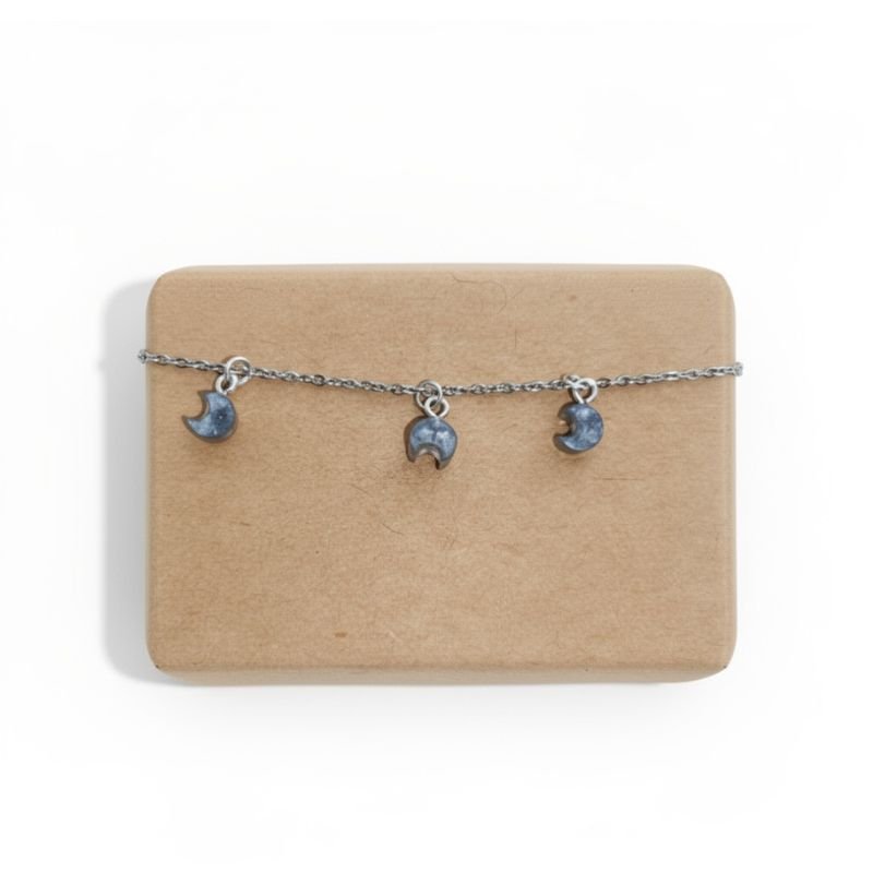 Αλυσίδα ποδιού με στοιχεία υγρού γυαλιού με γκρι μισοφέγγαρα.