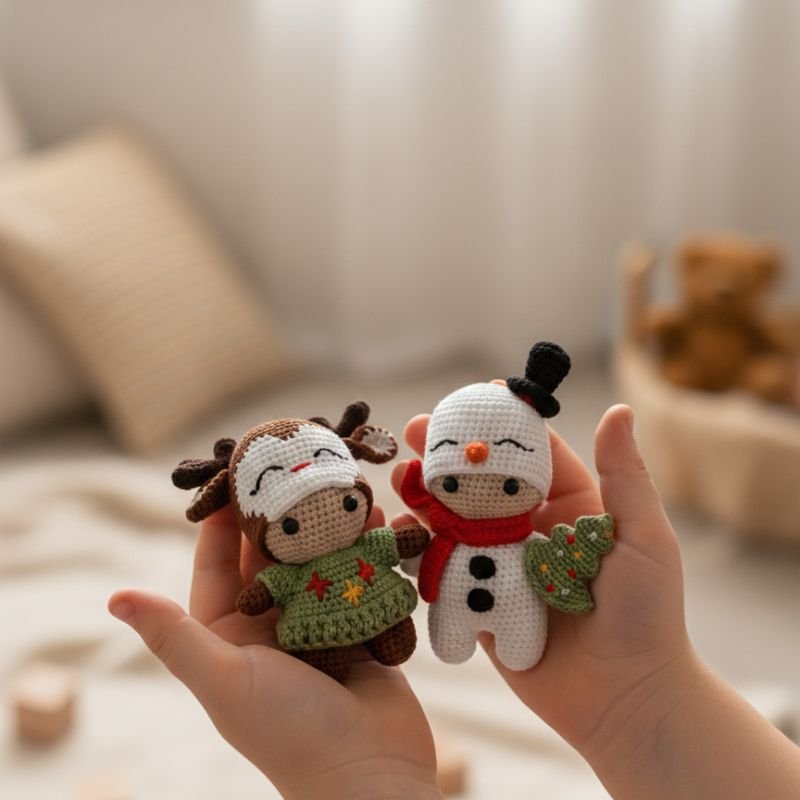 Δημιουργημένες με την τεχνική amigurumi και άριστη προσοχή στη λεπτομέρεια, αποτυπώνουν τη φροντίδα και την ποιότητα που χαρακτηρίζουν ένα αυθεντικά χειροποίητο αντικείμενο.