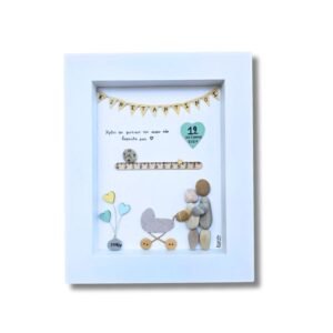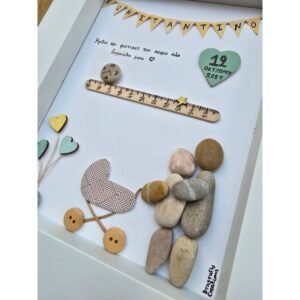 Μοναδικό, προσωποποιημένο κάδρο για το μωρό και την οικογένεια σας! Φτιαγμένο εξ ολοκλήρου με φυσικά βότσαλα και λεπτομέρειες ζωγραφισμένες στο χέρι.
