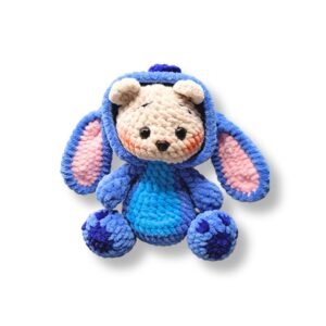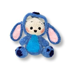 Πλεκτό λούτρινο και εξαιρετικά απαλό κουκλάκι που φοράει στολή του αγαπημένου Stitch – του ήρωα που λατρεύουν τα μικρά παιδιά!