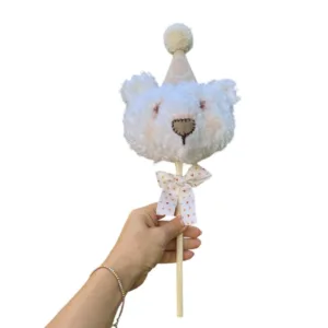 Είναι κεντημένο στο προσωπάκι, φοράει καπέλο με πονπόν που έχει εσωτερικά κουδουνίστρα, στηρίζεται σε λευκό ξύλο και είναι χαρούμενο να γίνει η μασκότ του πάρτυ!