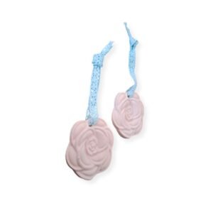 Σετ 2 πορσελάνινων σομόν λουλουδιών για το διακριτικό αρωματισμό των συρταριών με άρωμα ‘μήλο-κανέλα’.