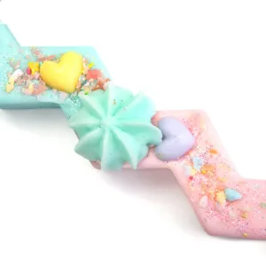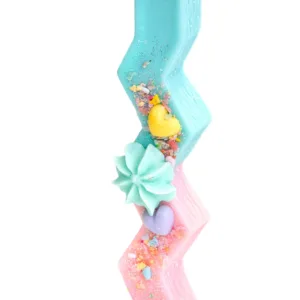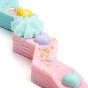 Διακοσμημένη με μια γαλάζια ροζέτα και πολύχρωμες μικρές καρδούλες και χρωματιστή χρυσόσκονη στις λεπτομέρειες. Μια ιδιαίτερη, παιχνιδιάρικη λαμπάδα που θα ενθουσιάσει κάθε κορίτσι με το σχήμα, τα χρώματα και το διακριτικό άρωμα καρύδας!