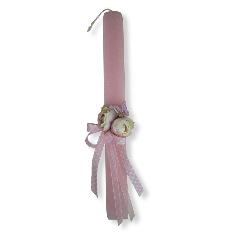 Αρωματική πλακέ λαμπάδα σε τριανταφυλλί ροζ χρώμα διακοσμημένη με όμορφες λουλουδάκια παιώνιες που κάνουν παρέα σε μια μικρή πεταλουδίτσα. Υπέροχη λαμπάδα, ρομαντική και στυλάτη. Για τις μικρές και για τις μεγαλύτερες αγαπημένες μας υπάρξεις. Για τις έφηβες που τόσο δύσκολα μπορούμε να βρούμε κάτι που θα τους αρέσει.