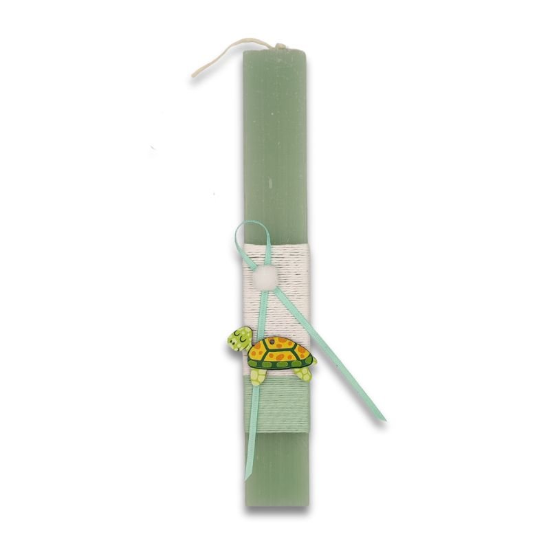 Αρωματική λαμπάδα βεραμάν 26εκ ντυμένη με λευκό και βεραμάν νήμα και διακοσμητικό ξύλινο χελωνάκι.