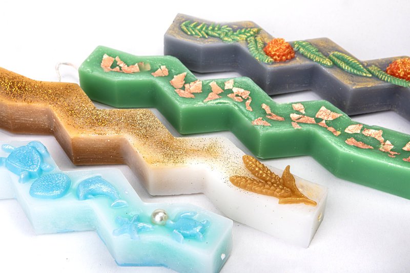 Κομψή και εντυπωσιακή εφηβική-γυναικεία λαμπάδα σε σχήμα ζιγκ-ζαγκ και στα χρώματα της καραμέλας γάλακτος σε ντεγκραντέ, με ανάγλυφη λεπτομέρεια ένα στάχυ και λαμπερή χρυσόσκονη. Το διακριτικό της άρωμα με νότες φρεσκάδας του καλοκαιριού θα μαγέψει μικρές και μεγάλες κυρίες και σίγουρα θα κερδίσει τις εντυπώσεις!