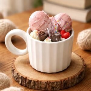 Λευκή κούπα με αρωματικό κερί και πρόσθετα κέρινα στοιχεία με καρδούλα, αστεράκι αλλα και μία μεγάλη μπισκοτένια καρδιά με γλυκό άρωμα σοκολάτας! Ένα δώρο για τον εαυτό σας αλλα και για τους αγαπημένους σας που θα σίγουρα θα ευχαριστηθούν!