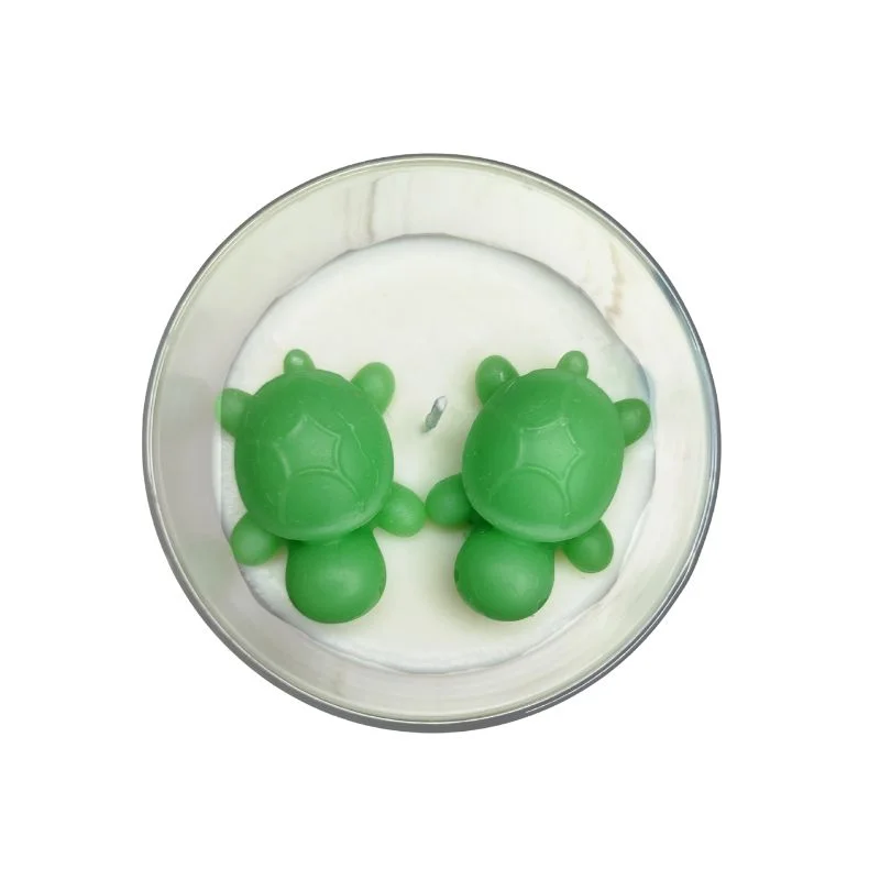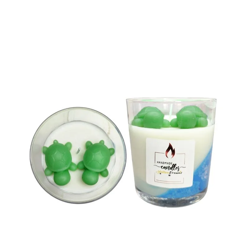 Δίχρωμο κερί μπλε-άσπρο από φυτικό 100% κερί σόγιας με δύο πράσινα χελωνάκια, σε άρωμα της επιλογής σας!!!