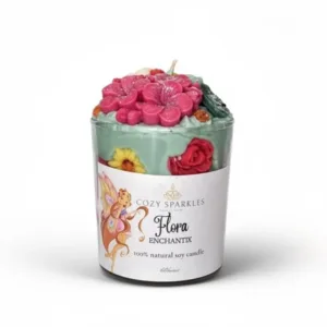 Επιλέξτε αυτό το υπέροχο κερί σόγιας διακοσμημένο με θέμα την πανέμορφη Flora από τις αγαπημένες μας νεράιδες WINX. Ταιριάζει σε κάθε σπίτι. Θα το λατρέψεις και σίγουρα θα σε ταξιδέψει στον κόσμο της άνοιξης.Σε ό,τι άρωμα εσείς επιθυμείτε.