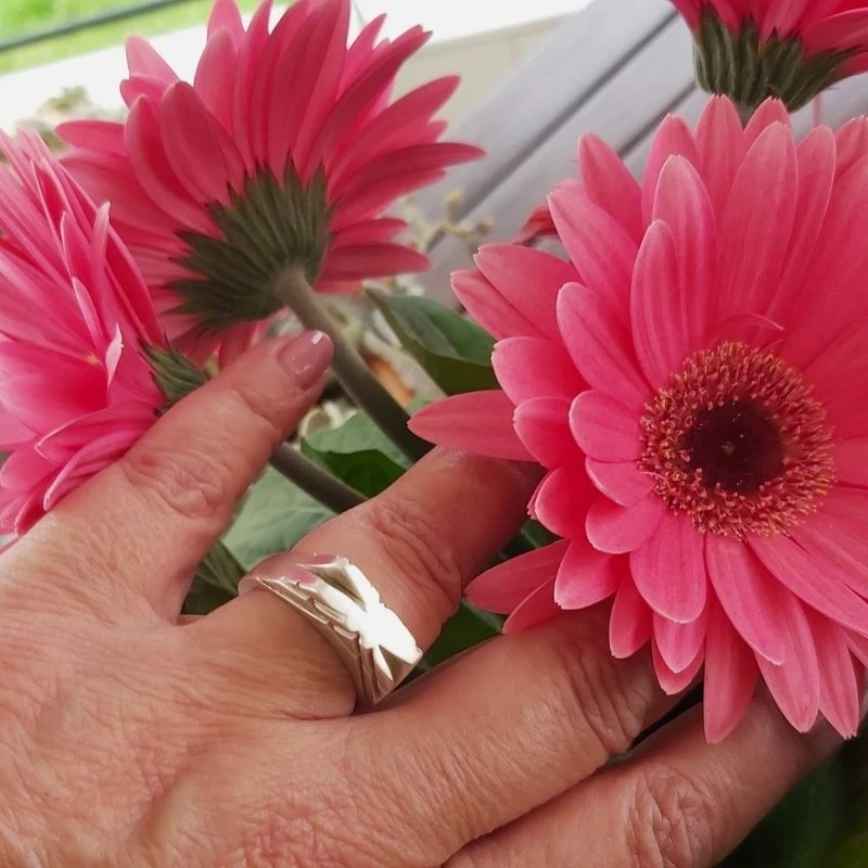 Ασημένιο χειροποίητο γυναικείο δαχτυλίδι, φτιαγμένο με μικρογλυπτική και χυτευμένο με ασήμι 925.