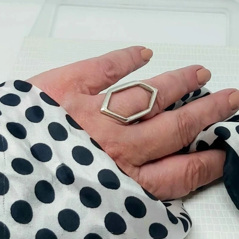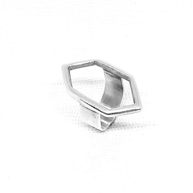 Γυναικείο δαχτυλίδι κατασκευασμένο από ασήμι 925. Έχει σχήμα εξαγώνου και φαρδιά, κλειστή γάμπα 8mm.