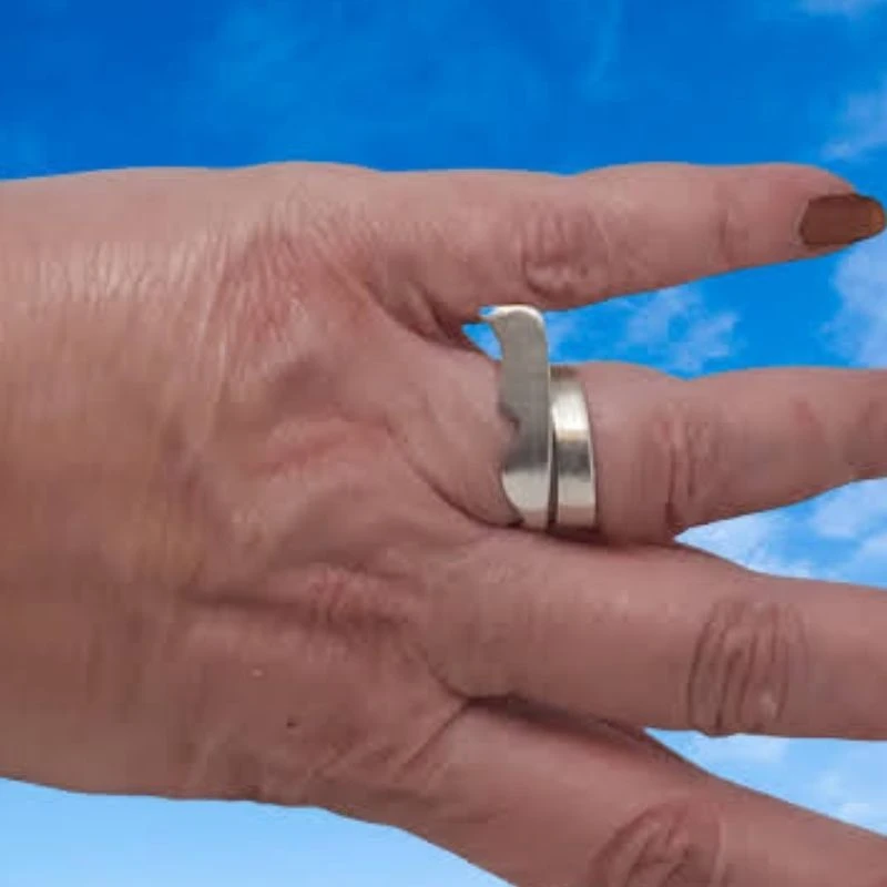 Είναι κατασκευασμένο από φύλλο αργύρου 925, με προέκταση που καλύπτει το διπλανό δάχτυλο.