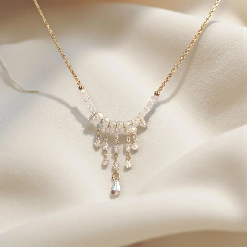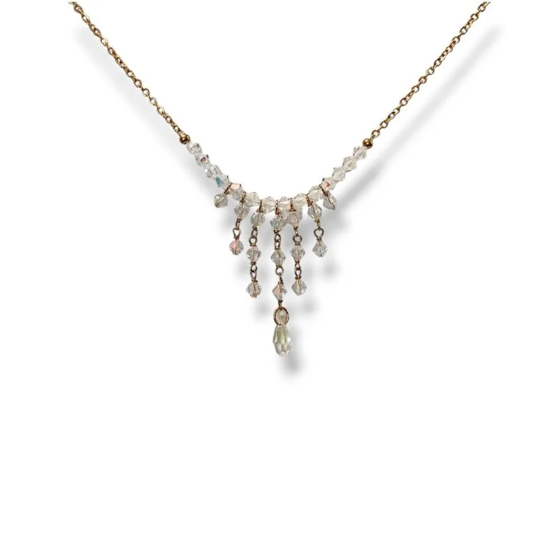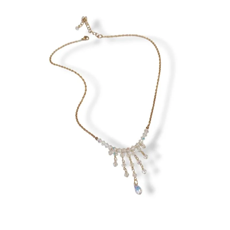 Χειροποίητο κολιέ με επιχρυσωμένη αλυσίδα και διάφανα ΑΒ κρύσταλλα swarovski.