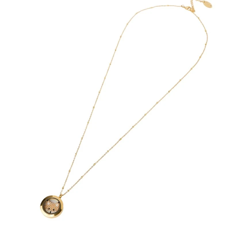 Ατσάλινο Λοκέτ Κολιέ με Χρυσό Αλεπού και Χάντρες Miyuki