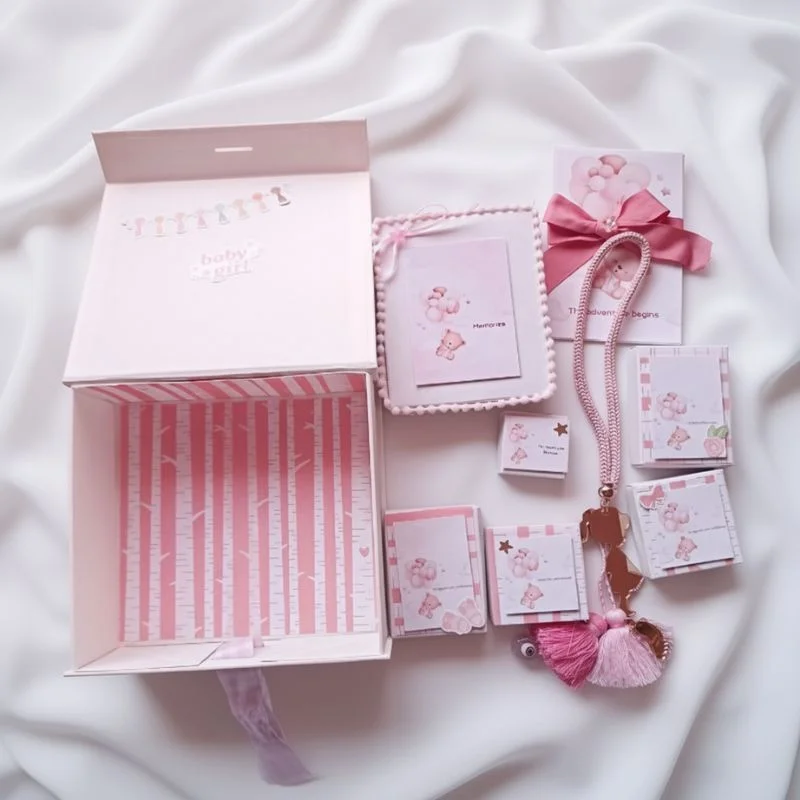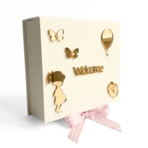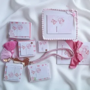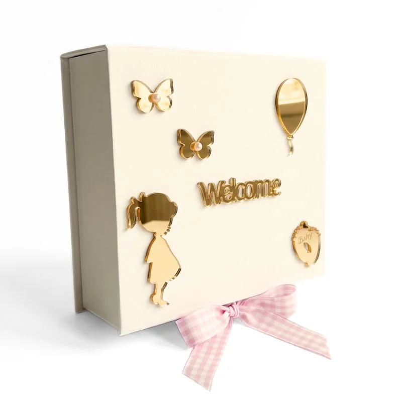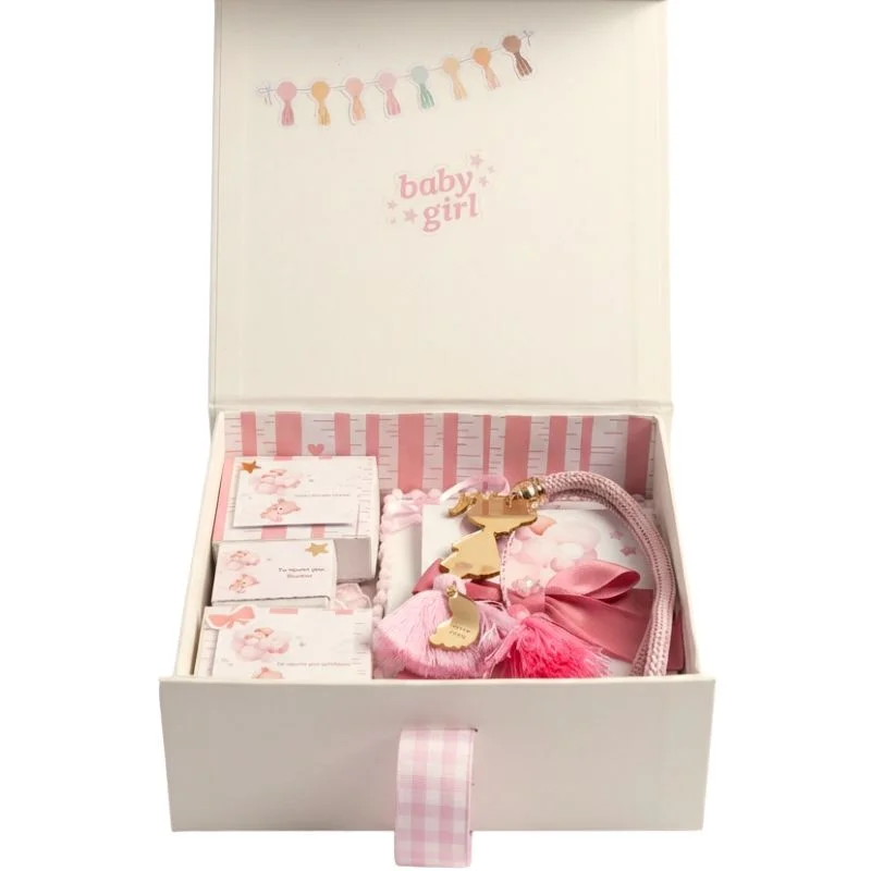 Το κουτί δεν προσωποποιείται και είναι έτοιμο προς χρήση, αποτελώντας ένα ιδιαίτερο δώρο γέννησης, baby shower ή βάπτισης για κορίτσι — ένα κουτί που, χρόνια μετά, ανοίγει και γεμίζει την καρδιά ροζ αναμνήσεις.