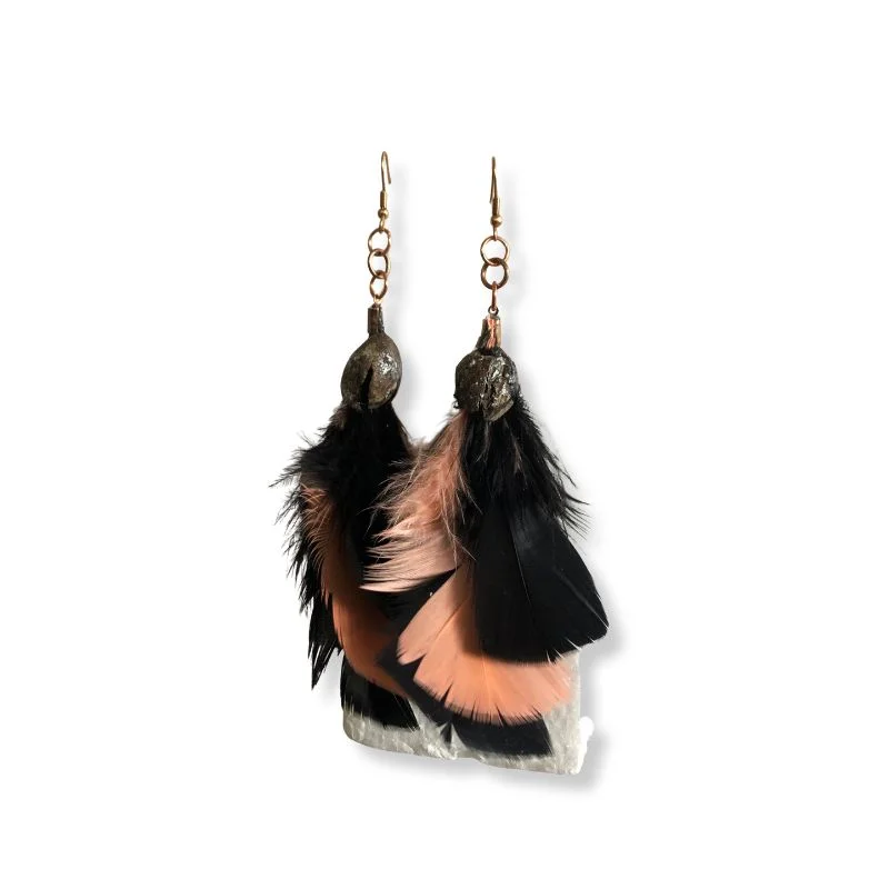 Φυσικός αποξηραμένος καρπός, χρωματισμένα φτερά σε μαύρο και πορτοκαλί χρώμα .