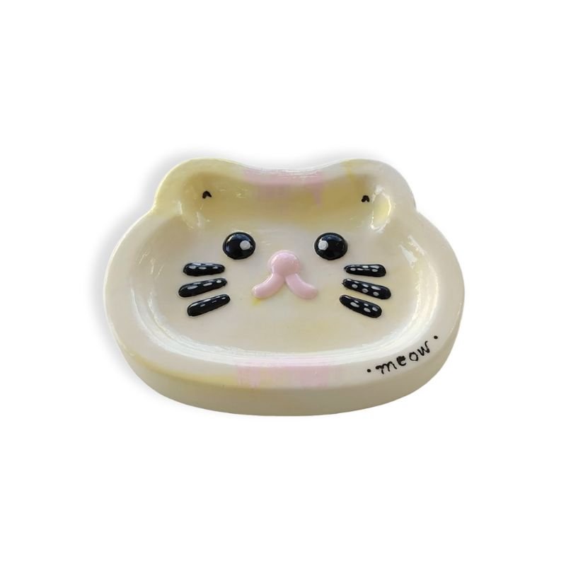 Γλυκό και πρακτικό πορσελάνινο πιατάκι σε σχήμα γατούλας, ζωγραφισμένο στο χέρι.