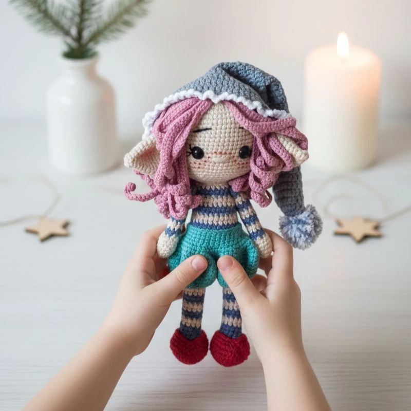Καλώς ήρθατε στον μαγικό κόσμο των χειροποίητων δημιουργιών μας! Σας παρουσιάζουμε με υπερηφάνεια το “Ξωτικό της Νέας Χρονιάς”, μια συλλεκτική, πλεκτή κούκλα που ξεχωρίζει για τον μοναδικό της χαρακτήρα και την άψογη ποιότητα κατασκευής. Αυτό το προϊόν είναι κάτι παραπάνω από ένα παιχνίδι· είναι ένα αντικείμενο τέχνης και μια γοητευτική προσθήκη στη διακόσμηση ή τη συλλογή σας
