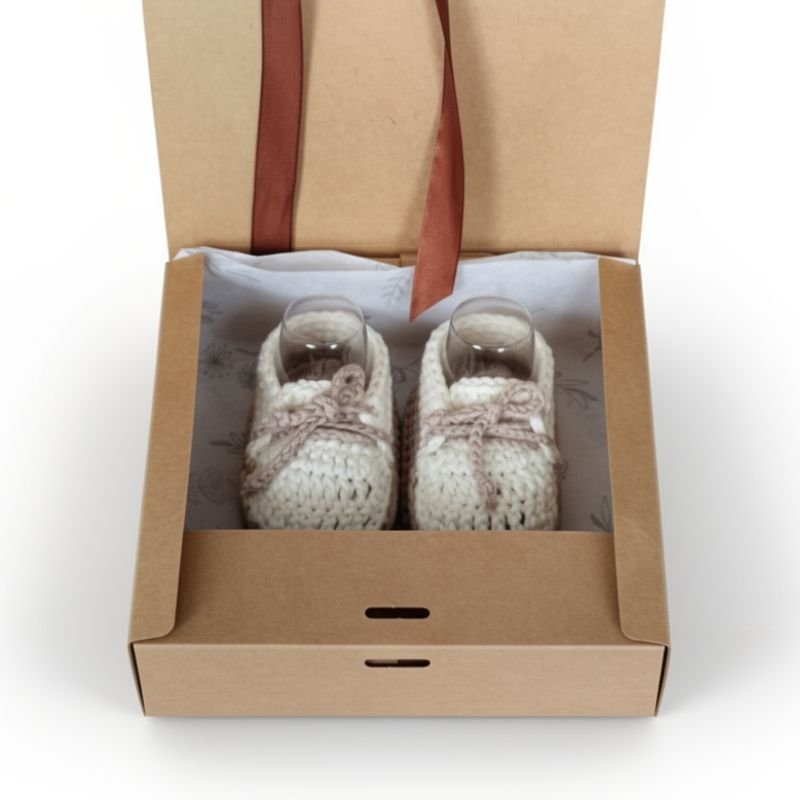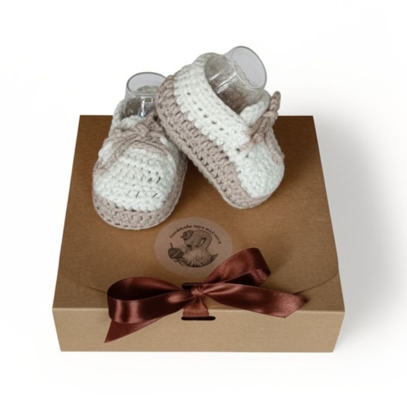 Χειροποίητα πλεκτά παπουτσάκια αγκαλιάς από 100% βαμβακερό νήμα, υποαλλεργικό κατάλληλο για το ευαίσθητο βρεφικό δερματάκι.