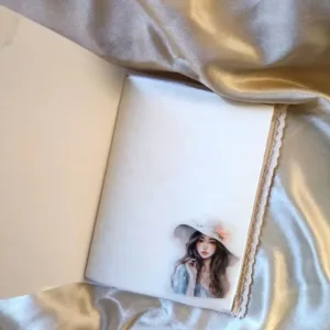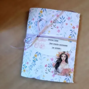 Ένα κομψό και ρομαντικό χειροποίητο journal διαστάσεων 13×17 εκ., ιδανικό για όσους αγαπούν να κρατούν τις σκέψεις, τα όνειρα και τις στιγμές τους γραπτά.