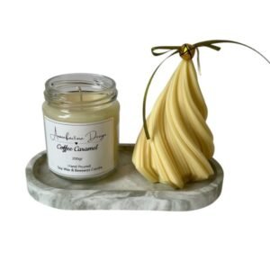 Ανακαλύψτε τη μαγεία του φωτός μέσα από το μοναδικό μας πακέτο δώρου, που περιλαμβάνει ένα κομψό γυάλινο βάζο με κερί 200, ένα αρωματικό κερί σε σχήμα δέντρου και έναν οβάλ τσιμεντένιο δίσκο με εφέ μαρμάρου.