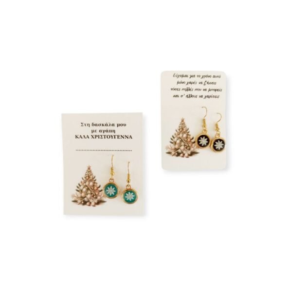 Τα σκουλαρίκια θα τα παραλάβετε τοποθετημένα σε χριστουγεννιάτικο καρτελάκι με ευχή και σε συσκευασία δώρου.