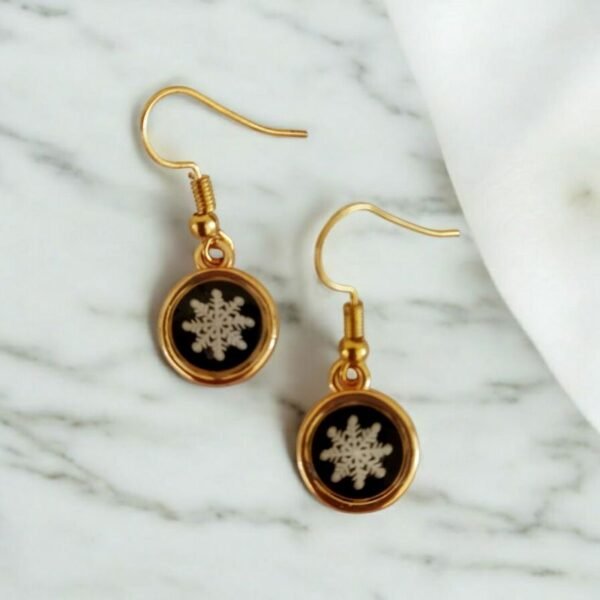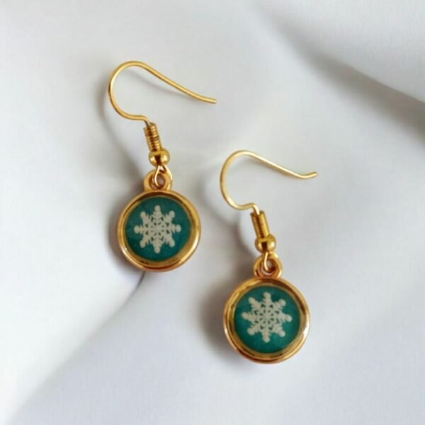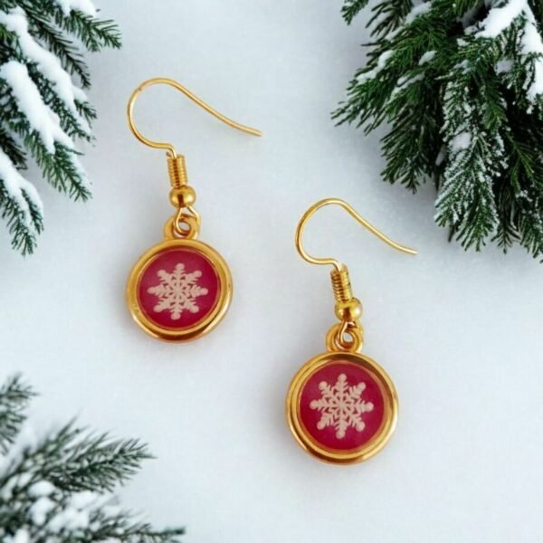 Σκουλαρίκια χριστουγεννιάτικα με χιονονιφάδες κρεμαστά με υγρό γυαλί σε 4 χρώματα για να επιλέξετε.