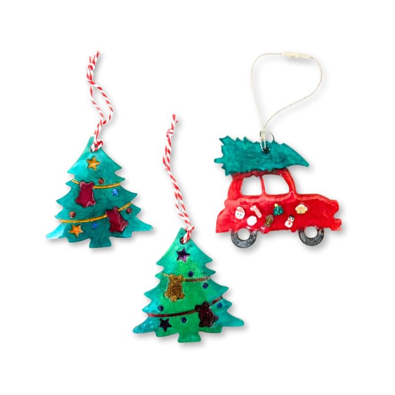 Χριστουγεννιάτικα στολίδια με υγρό γυαλί χριστουγεννιάτικα δεντράκια