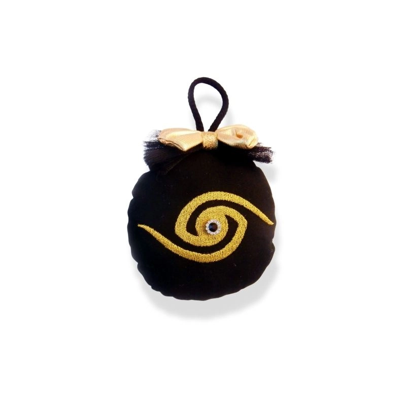 Χριστουγεννιάτικη υφασμάτινη μπάλα Μάτι, μαύρο με χρυσό (10cm)