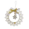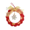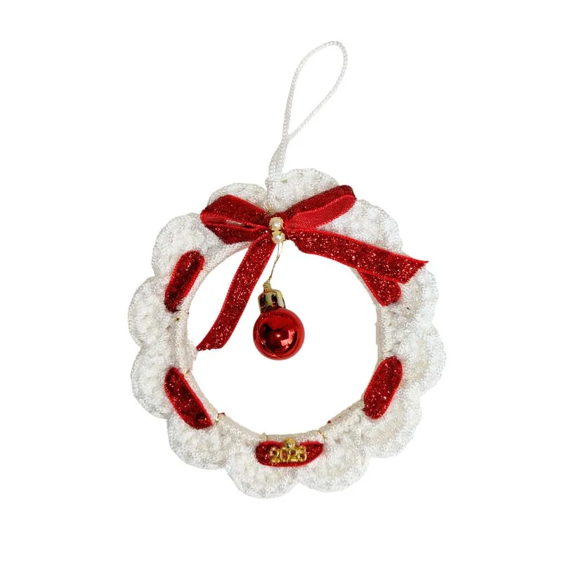 Πλεκτό άσπρο στεφανάκι, στολισμένο με κόκκινη βελούδινη κορδέλα, κόκκινη μπαλίτσα και μεταλλικό 2026.