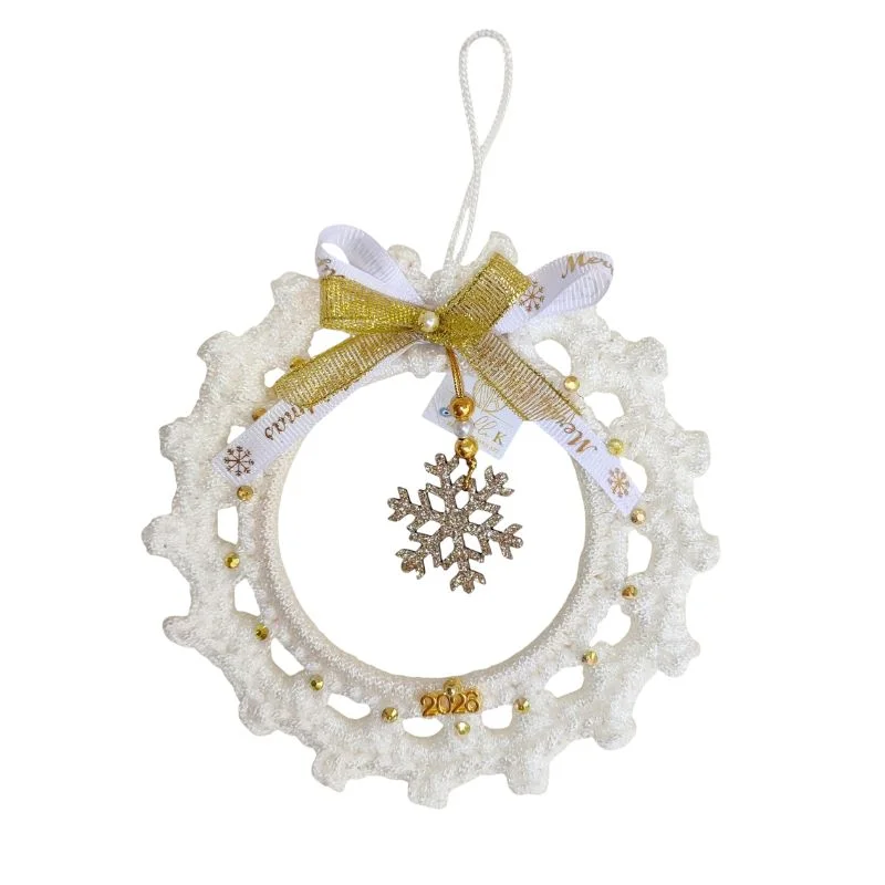 Χριστουγεννιάτικο άσπρο πλεκτό στεφανάκι γούρι 2026