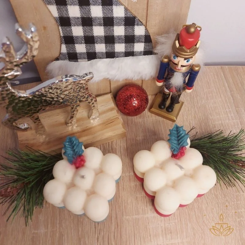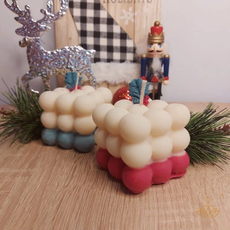 Δημιούργησε την κατάλληλη ατμόσφαιρα στον χώρο σας επιλέγοντας αυτό το τόσο υπέροχο χριστουγεννιάτικο κερί σόγιας σε σχήμα κύβου με φούσκες διακοσμημένο με γκι που θα δώσει στον χώρο σας μια μίνιμαλ αίσθηση. Μπορείς να το αρωματίσεις όπως θες. Διαθέσιμο σε 2 χρώματα.