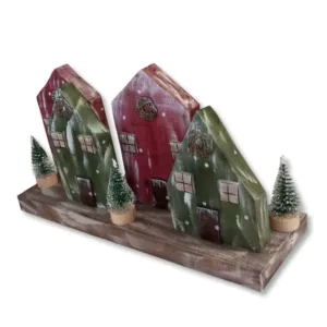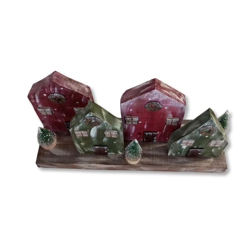 Χειροποίητο Χριστουγεννιάτικο χωριό με ξύλινα σπιτάκια, σε διάσταση 39*20*11 εκατοστά.
