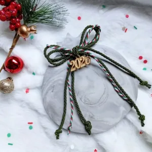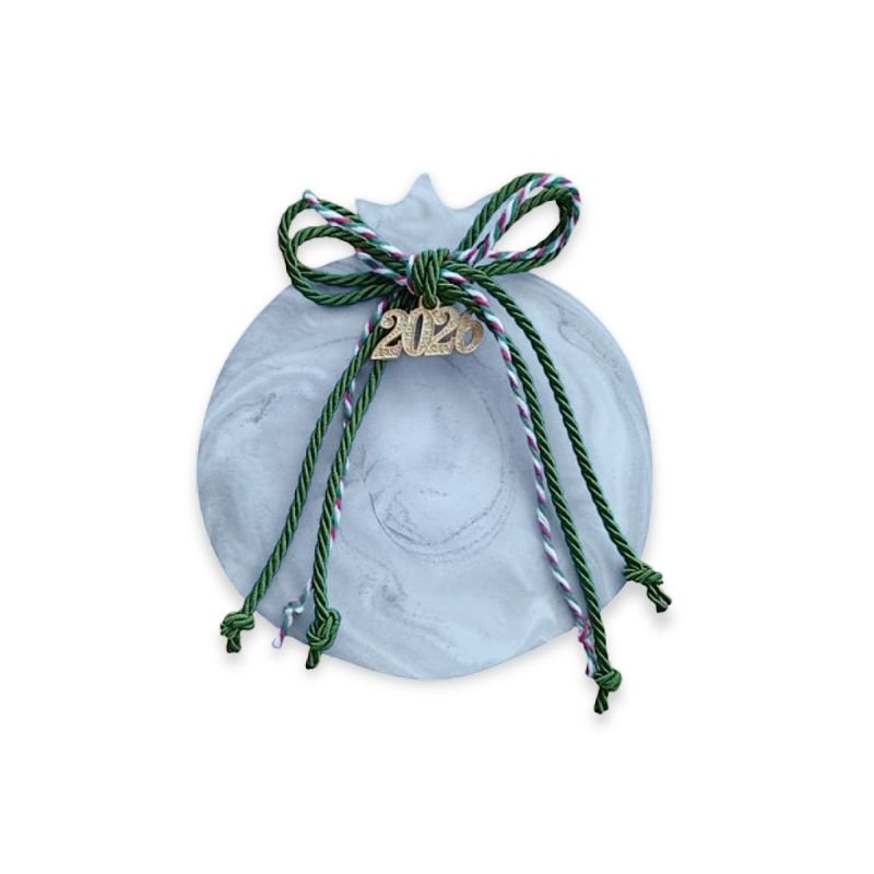Χριστουγεννιάτικο διακοσμητικό γούρι – ρόδι σε γκρι χρώμα και εφέ μαρμάρου με χρυσές λεπτομέρειες.