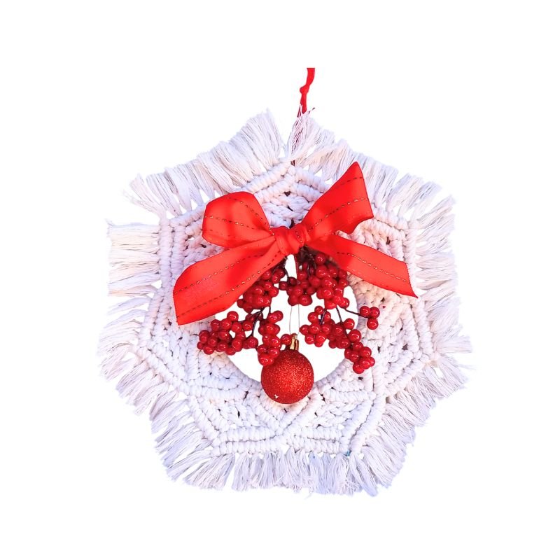 Χειροποίητο χριστουγεννιάτικο διακοσμητικό στεφάνι με την πλέξη μακραμέ