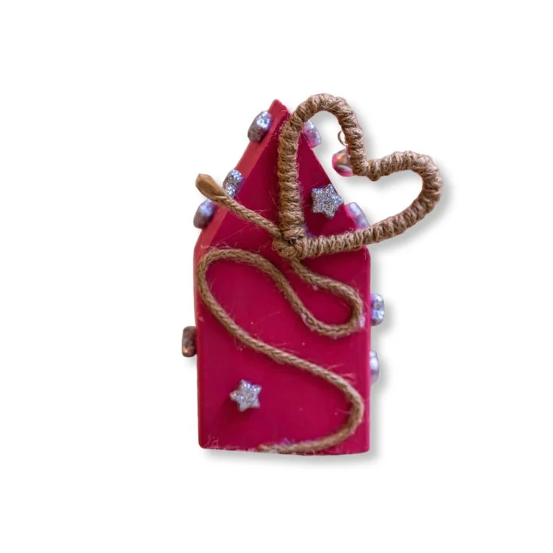 Είναι βαμμένο με χρώμα κιμωλίας, στολισμένο με λαμπερά αστεράκια, κουδουνάκι και μια καρδιά από σπάγγο που λέει «σε σκέφτηκα💕