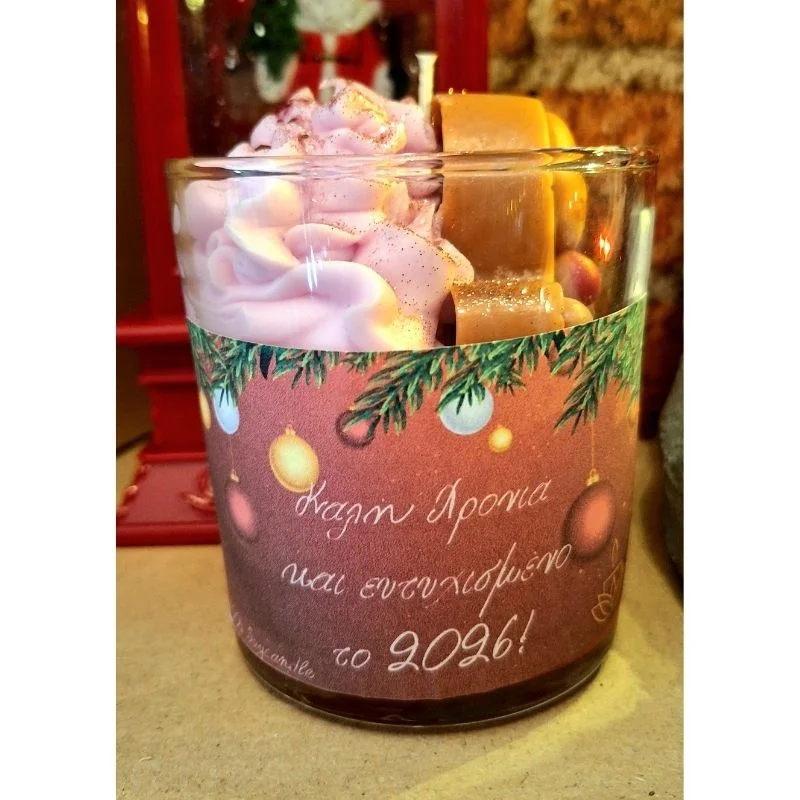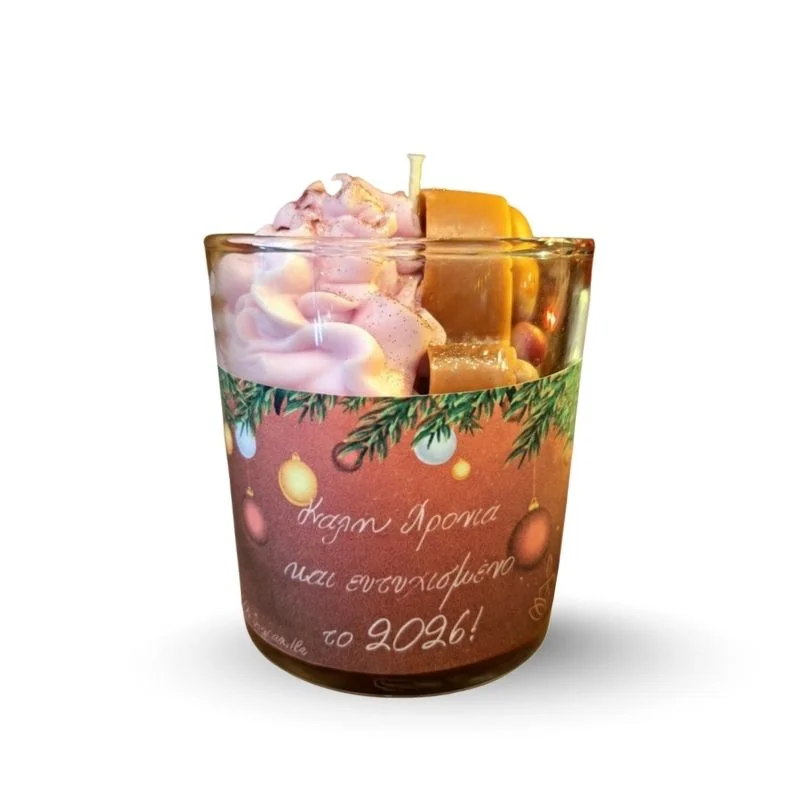 Επιλέξτε αυτό το άκρως χριστουγεννιάτικο κερί σόγιας διακοσμημένο με τον μπισκοτούλη σε στυλ γούρι με ετικέτα με ευχή “Καλή χρονιά και ευτυχισμένο το 2026” και ταξιδέψτε στον κόσμο των χριστουγέννων .Ιδανικό για όλα τα γούστα θα το λατρέψετε. Μπορείτε να το αρωματίσετε όπως επιθυμείτε.