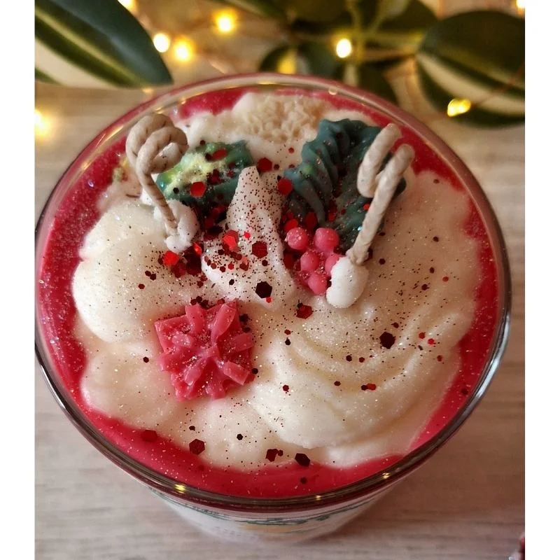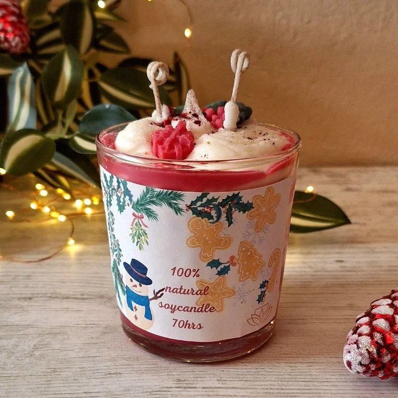 Επιλέξτε αυτό το άκρως χριστουγεννιάτικο κερί σόγιας διακοσμημένο με διάφορα χριστουγεννιάτικα melts και ταξιδέψτε στον κόσμο των χριστουγέννων. Ιδανικό για όλα τα γούστα θα το λατρέψετε. Μπορείτε να το αρωματίσετε όπως επιθυμείτε.